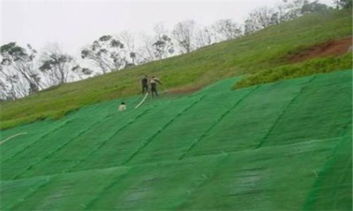 三维植被网是一种三维结构的似丝瓜网络样的网垫,留有90%的空间可充填土壤、细沙土,植物根系可以穿过其间,整齐、均衡的生长,长成后的草皮使网垫、草皮、泥土表面牢固地结合在一起,形成一层坚固的复合保护层